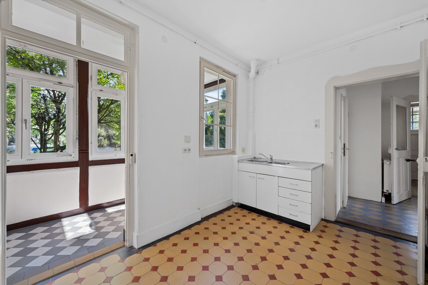 Die Bodenbeläge bestehen aus Holz- und Fliesenbelägen, die größtenteils aus dem Ursprungsbaujahr stammen und den historischen Charakter des Hauses unterstreichen.
