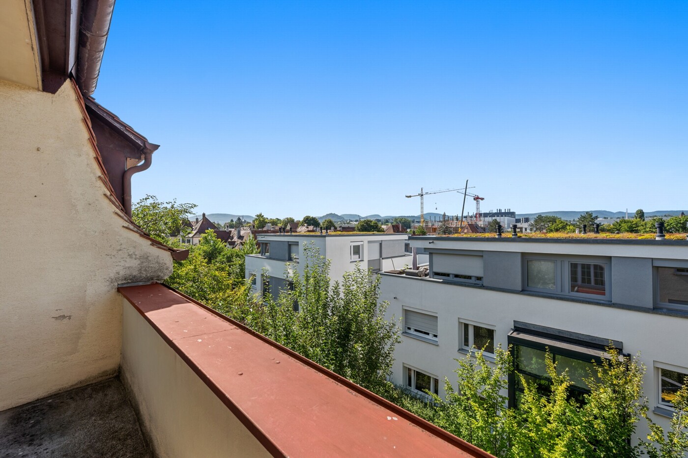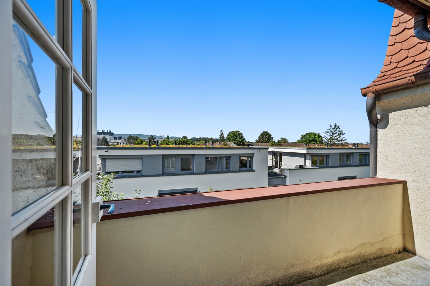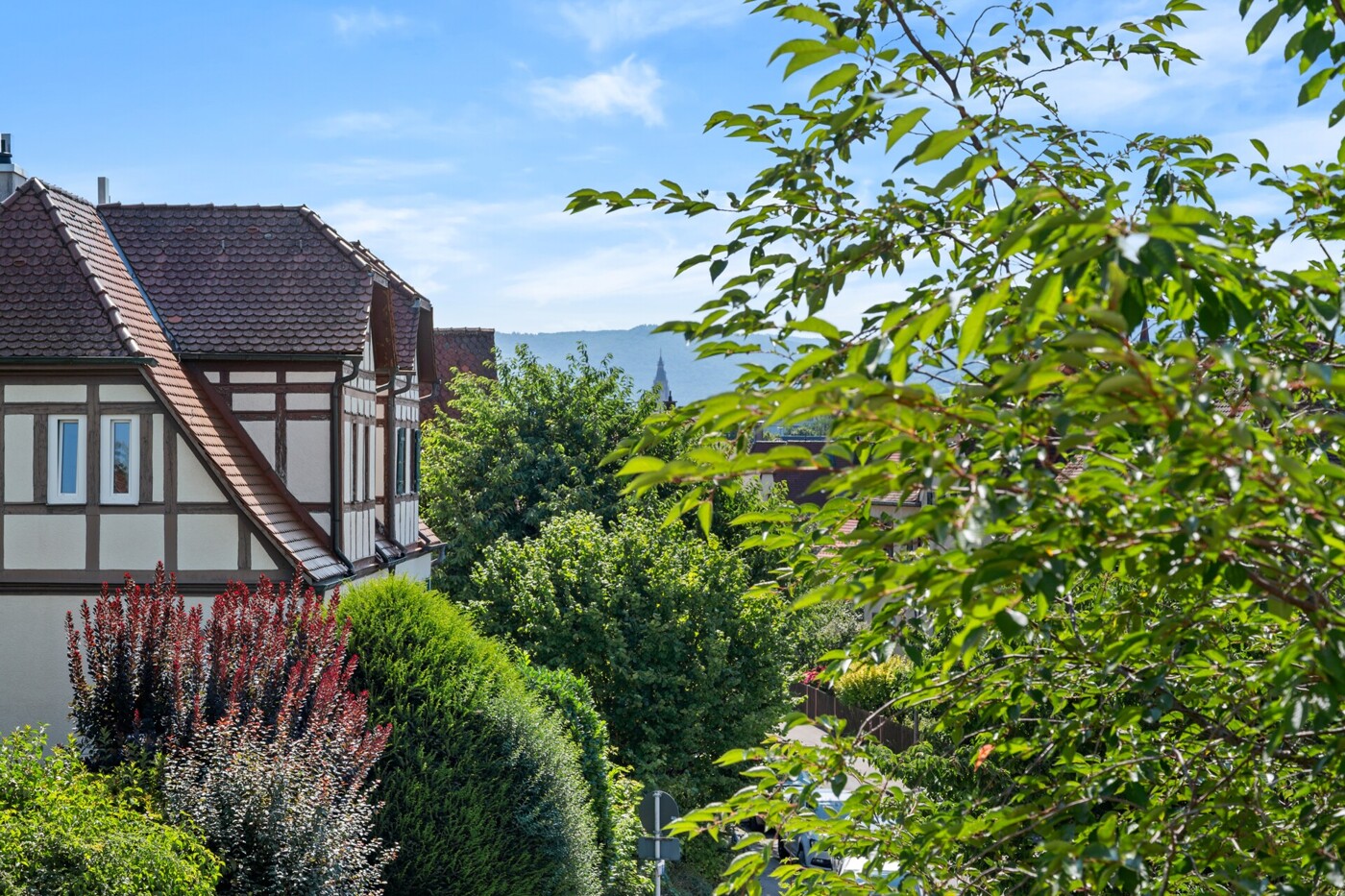 Im Obergeschoss befindet sich ein großzügiger Balkon, der einen schönen Ausblick ins Grüne sowie auf die Schwäbische Alb bietet und zusätzlichen Freiraum schafft.