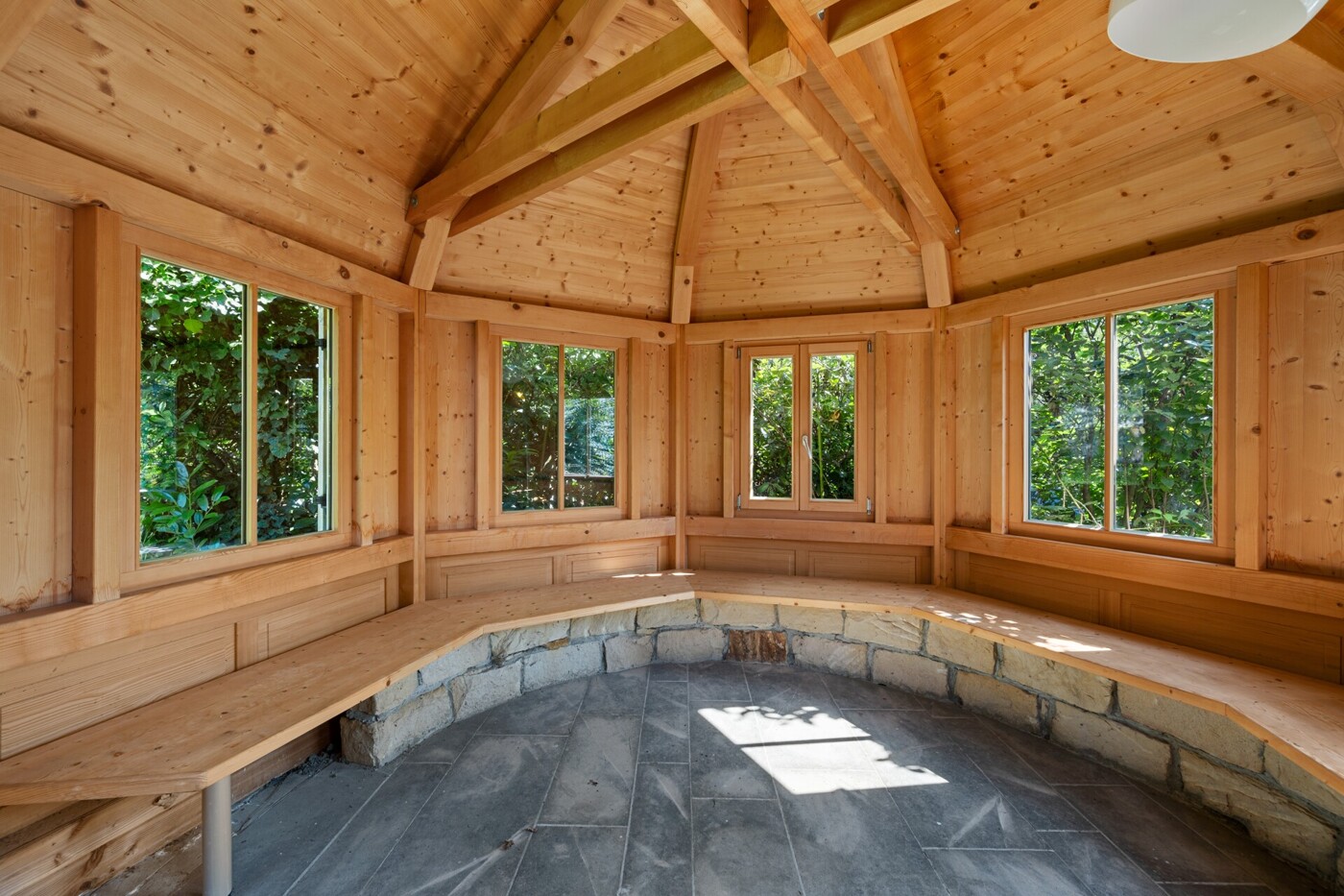 Das absolute Highlight dieser Immobilie ist der wunderschön angelegte Garten mit einem stilvollen Pavillon, welcher 2014 neugestaltet wurde. Dieser Rückzugsort lädt zu entspannten Stunden im Freien, geselligen Grillabenden oder zur puren Erholung ein. Das Grundstück ist liebevoll bepflanzt, pflegeleicht angelegt und bietet Privatsphäre in sehr guter Wohnlage.